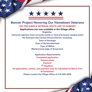 If you would like to schedule a time to come in after business hours, please contact the Village Clerk’s Office at 518-695-3808 or via email [email protected]